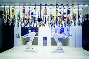 The real actors of the bar are robots from iconic KUKA Robotic Corporation of Germany, one of the world’s leading suppliers of robot technology and system engineering, founded in 1889.